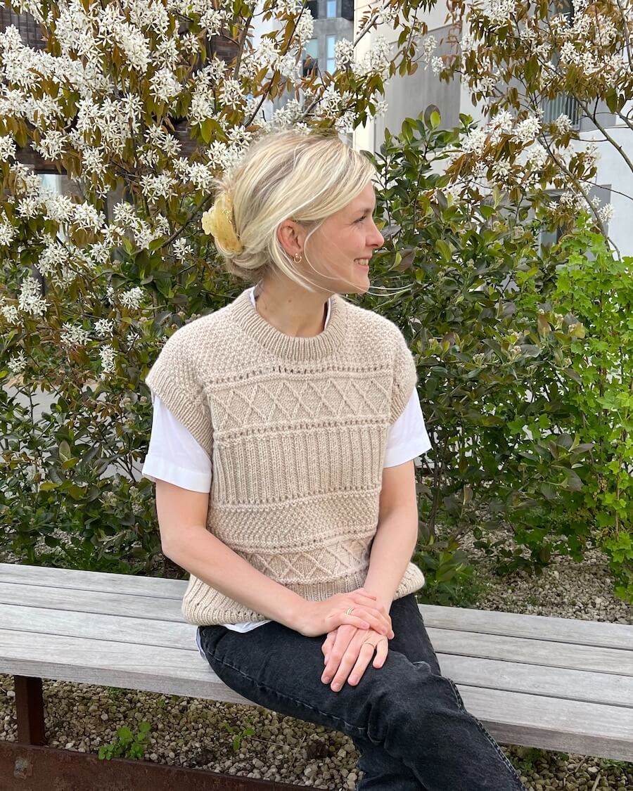 This week, I finished the second hood in beige, which turned out lovely again. The pattern is really great. The project post will be up today with the link to the free pattern I used. Have already worn it out a few times this week as the temperatures have dropped again. I still have a lot of the beige yarn left over since I bought new to supplement the leftover mohair. Probably enough for a sweater vest thing (inspo shown below). I might start this in parallel to the Dagmar sweater as a more portable project. This also has cable patterns on it; am slowly mastering cables.
